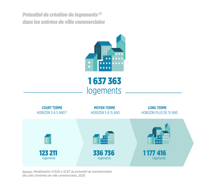 Un baromètre présenté le 4 juin 2025 par Icade et la Scet estime que les entrées de ville commerciales pourraient accueillir 1,6 million de logements, dont 120 000 rapidement, ainsi que 15 000 hectares de foncier économique et 10 000 hectares d’espaces renaturés. Oui, mais où ?